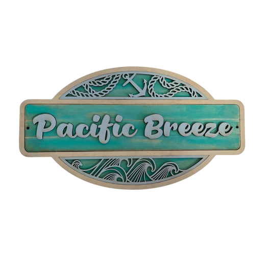 Pacific Breeze Coastal Wooden Sign – Laser Cut Beach House Wall Decor